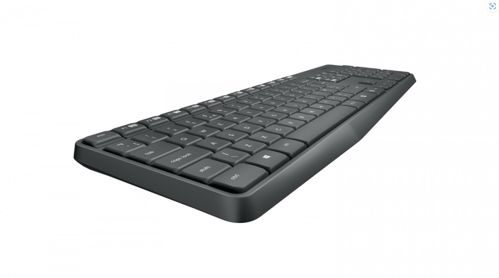 Kit Logitech MK235 wireless keyboard + mouse, USB interface, operating distance up to 10m, 100 keys, mouse resolution 1000 DPI, gray