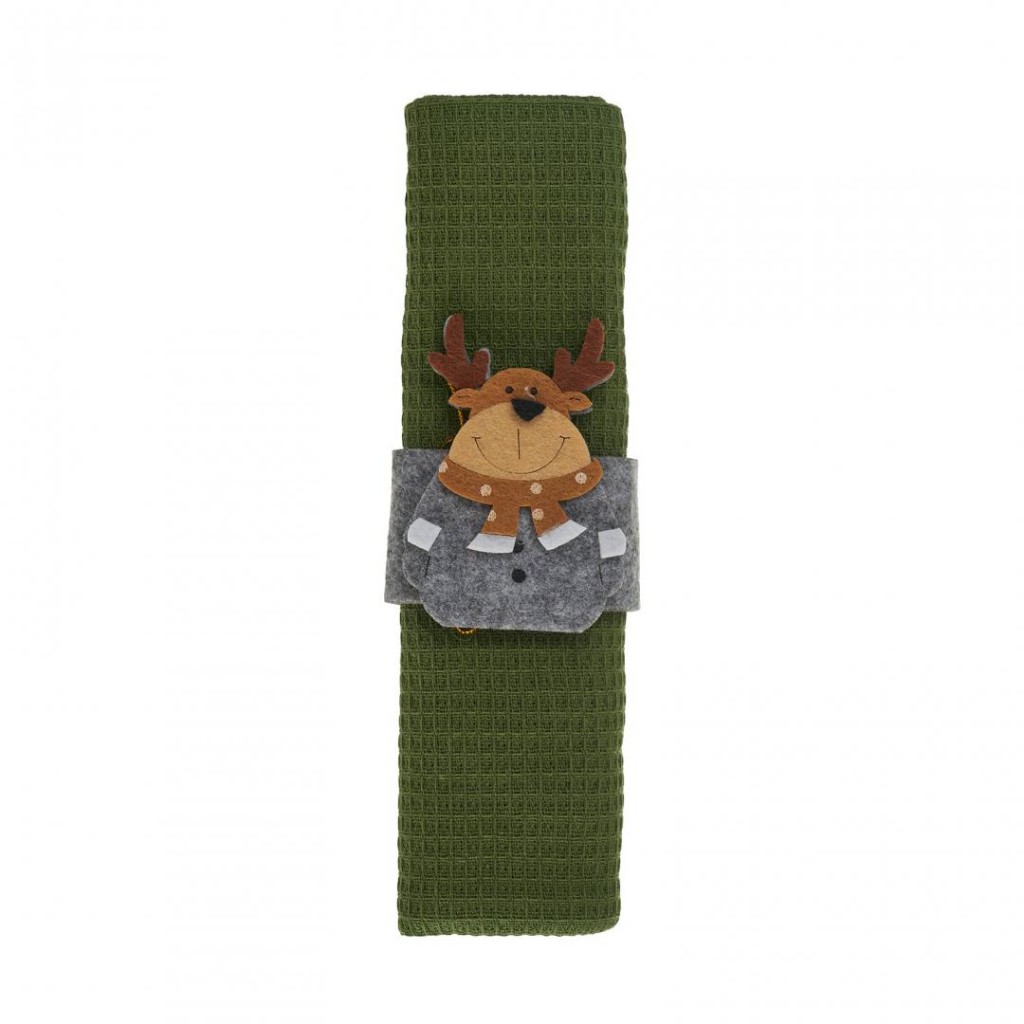 Kitchen towel with napkin ring various Christmas models. Towel dimensions: 38×64 cm, 100% Cotton, 60 gr / piece, density 230 GSM
