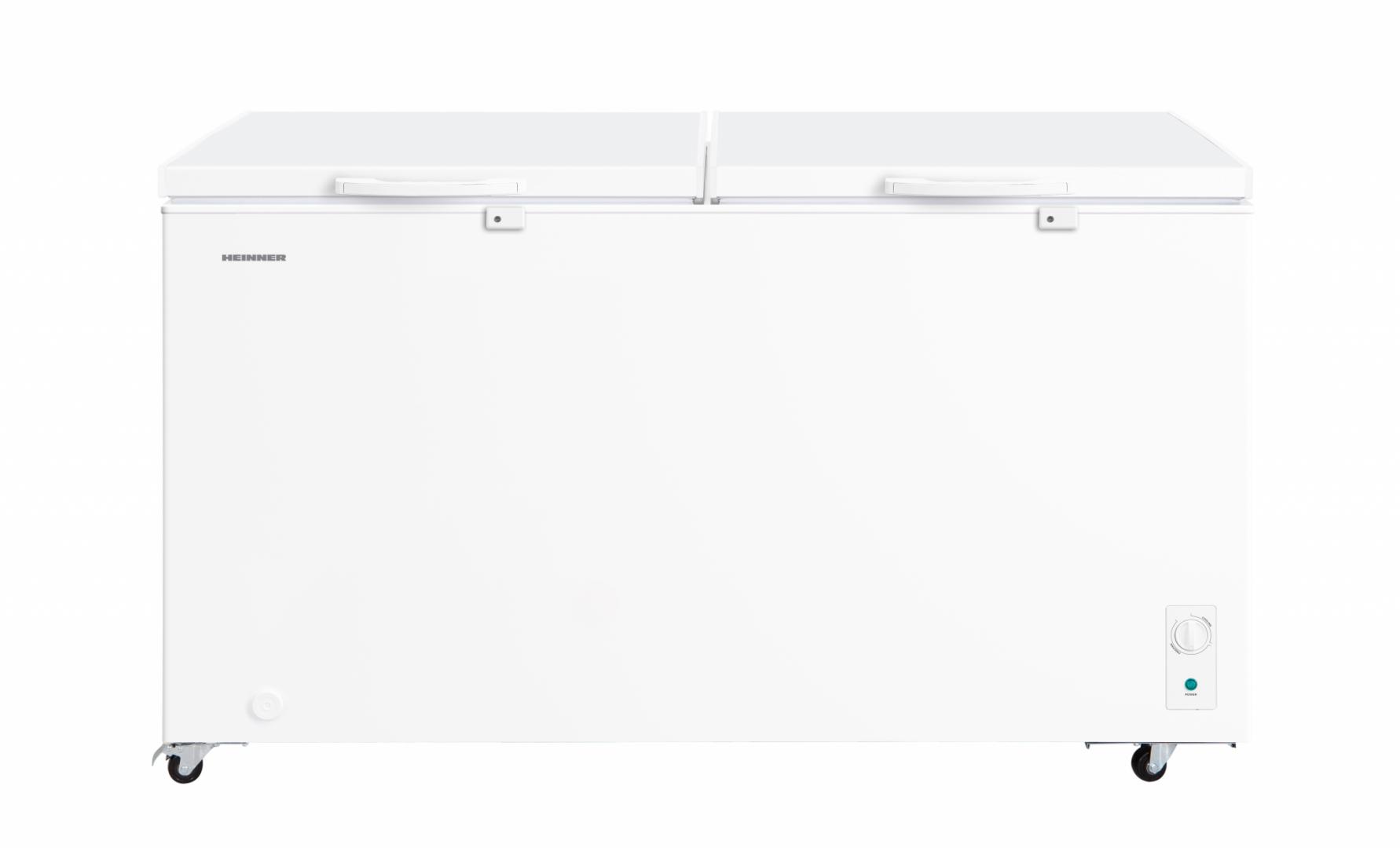 Lada frigorifica Heinner HCF-M508INVCE++, clasa energetica: E, compresor Inverter, functionare convertibila (Frigider/Congelator), capacitate totala: 508L, control mecanic, rezistenta la frig, lumina LED, 2 cosuri, maner extern cu incuietoare, decongelare manuala, role pentru transportare usoara, capacitate de congelare: 23kg/24h, dimensiuni (LxAxI): 153 x 73.5 x 86 cm, culoare: Alb