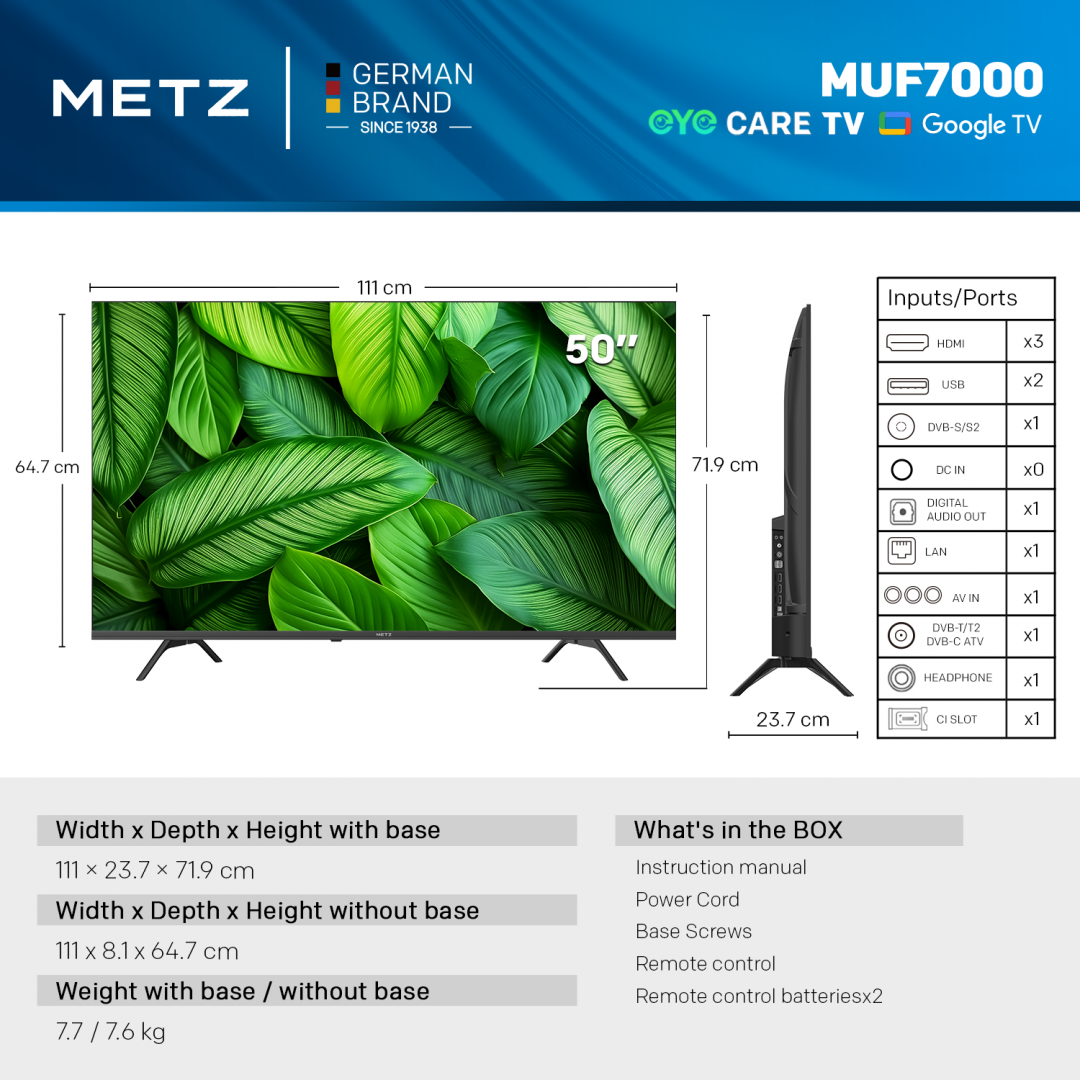 LED TV 4K 50″(125cm) METZ 50MUF7000Z