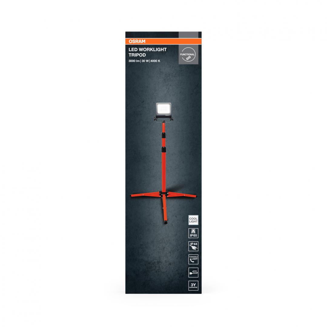LED projector (work lamp) with stand OSRAM Worklight Tripod, 30W,220-240V, 2700 lm, neutral light (4000K), IP65/IK06/IP44, adjustable height 1.8m, Aluminum