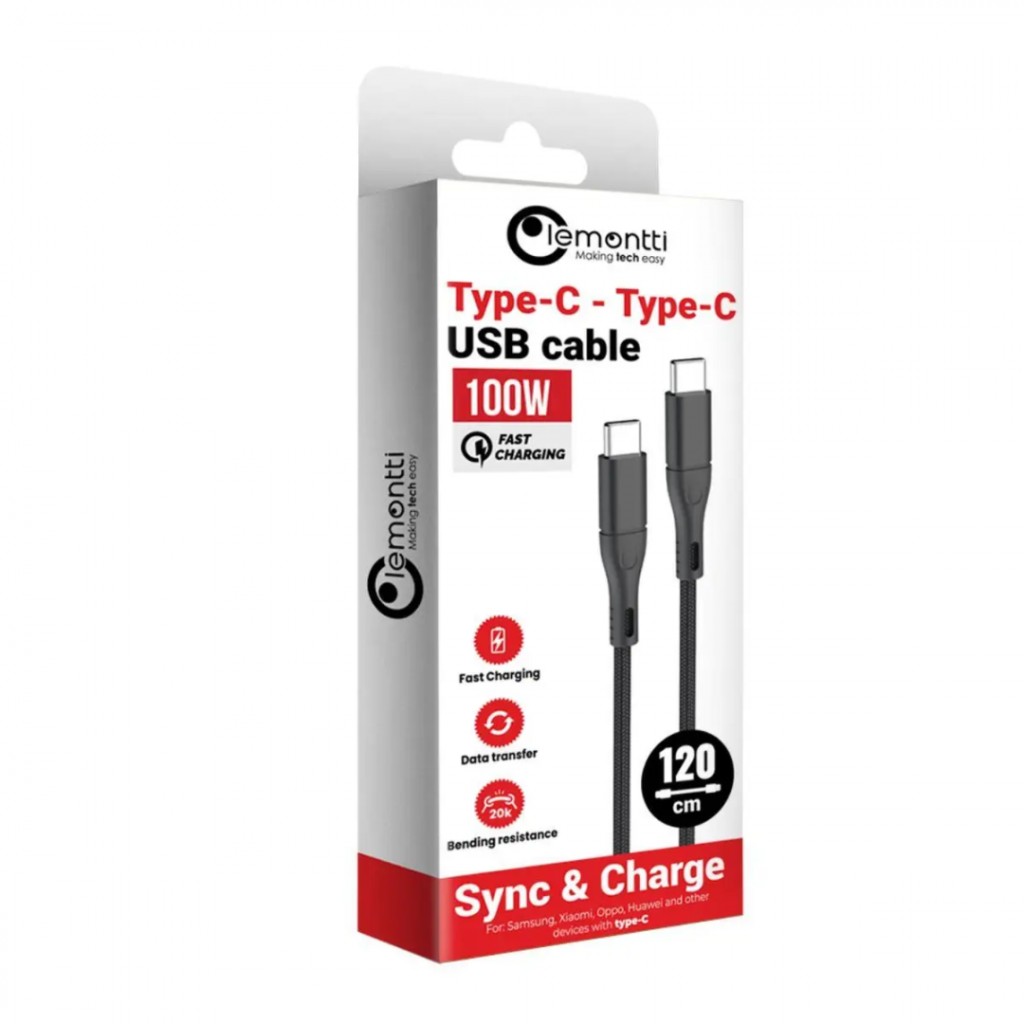 Lemontti Super Fast Charge Type-C to Type-C cable, PD 100W, power: 100W: 5V/3A、9V/3A、12V/3A、15V/3A、20V/5A, length 1.2m, cable