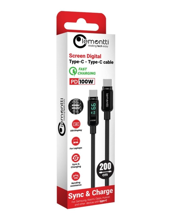 Cable Lemontti Screen Digital Display Type-C to Type-C, Fast Charge, 100W, length 2m, Black