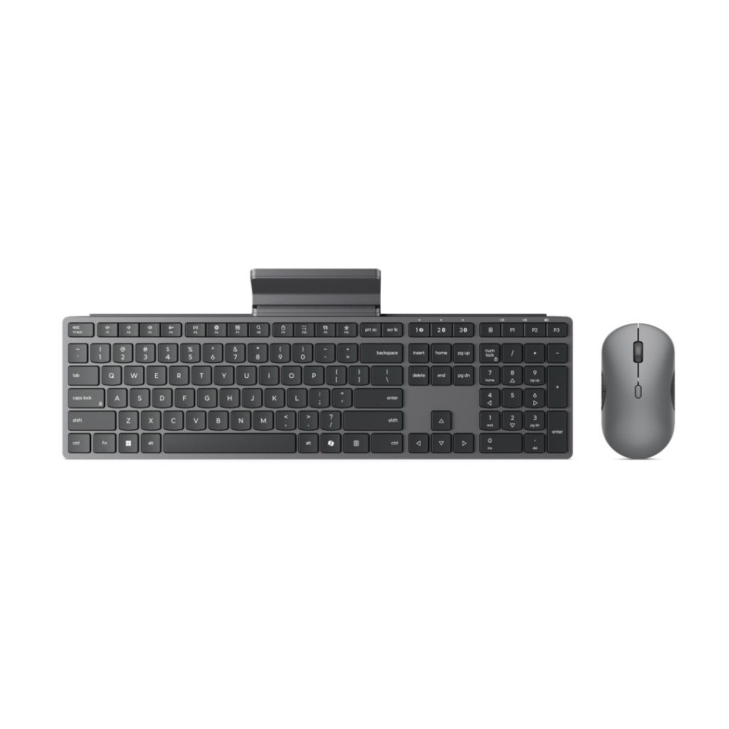 Lenovo 700 Modern Multi-Device Wireless Combo Wireless Keyboard & Mouse Kit with Phone Stand; Mouse: up to 4000DPI with sensor: IR; number of buttons: 8; connectivity: USB-A 2.4G receiver and Bluetooth 5.4; keyboard layout: US; compatible with Windows 10, Windows 11; color: dark gray (Luna Grey)