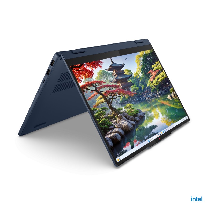Laptop Lenovo IdeaPad 5 2-in-1 14IAL10, 14″ WUXGA (1920×1200) IPS 300nits Glossy, 45% NTSC, 60Hz, TÜV Low Blue Light, Glass, Touch, Intel® Core™ Ultra 7 255U, 12C (2P + 8E + 2LPE) / 14T, Max Turbo up to 5.2GHz, 12MB, video Integrated Intel® Graphics, RAM 1x 16GB Soldered LPDDR5x-8000, SSD 512GB SSD M.2 2242 PCIe® 4.0×4 NVMe®, no ODD, microSD Card Reader, Stereo speakers, 2W x2, optimized with Dolby Audio™, FHD 1080p + IR with Privacy Shutter, No Onboard Ethernet, WLAN Wi-Fi® 7, 802.11be 2×2, Bluetooth 5.4, Non-WWAN, No Fingerprint Reader, Ports: 1x USB-A (USB 5Gbps / USB 3.2 Gen 1); 1x USB-A (USB 5Gbps / USB 3.2 Gen 1), Always On; 2x USB-C® (USB 10Gbps / USB 3.2 Gen 2), with USB PD 3.0 and DisplayPort™ 1.4; 1x HDMI® 1.4b; 1x Headphone / microphone combo jack (3.5mm); 1x microSD card reader, 65W USB-C® (3-pin), Integrated Battery 57Wh, Backlit, English, Cosmic Blue, Weight 1.6 kg, Dimensions 313 x 227 x 17.5 mm (12.32 x 8.94 x 0.69 inches), 2-year, Courier or Carry-in, Accessories None, Free DOS