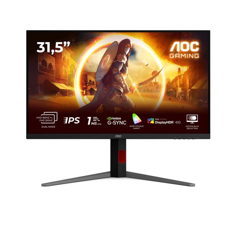Monitor AOC 31.5″ U32G4U, Diagonal (inch): 31.5, Diagonal (cm): 80, Aspect ratio: 16:9, Panel: Fast IPS, Resolution: 3840×2160, Refresh Rate: 160Hz, Response time GtG: 1ms, Response time MPRT: 0.5ms, Brightness (max): 450 cd/m², Contrast (static) : 1000:1, Contrast (dynamic): 80M:1, Viewing angle: 178/178, Color Gamut Type: Adobe RGB, Color Gamut Coverage: 0.918, Colours: 1.07B, VESA Wallmount: 100×100, Tilt: -3/+21, HAS: 130mm, Pivot: 90˚, Swivel: -2/+20, D-SUB: 0, HDMI: x2, DisplayPort: x1, USB Hub: 4x USB 3.2 Gen 1 Type-A, 1x USB 3.2 Gen 1 Type-B, AUX: x1 3.5mm Audio OUT