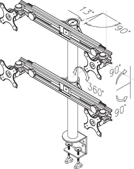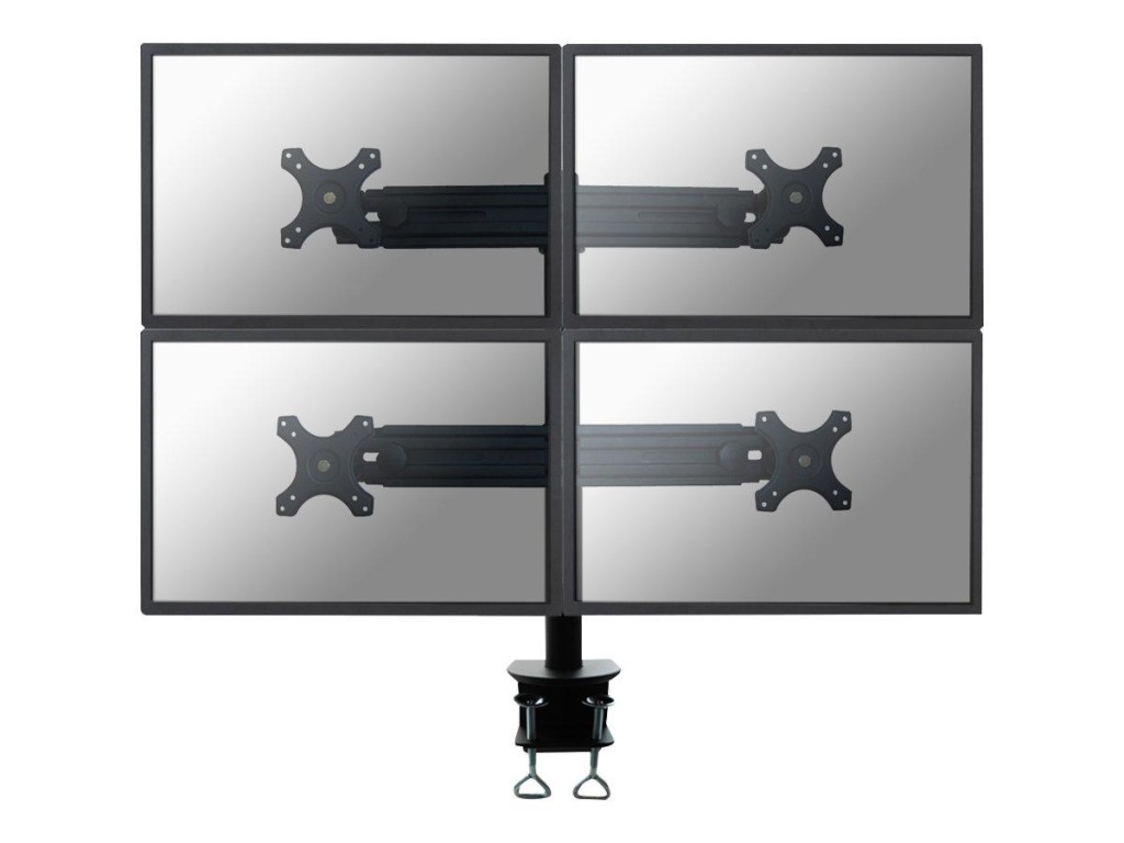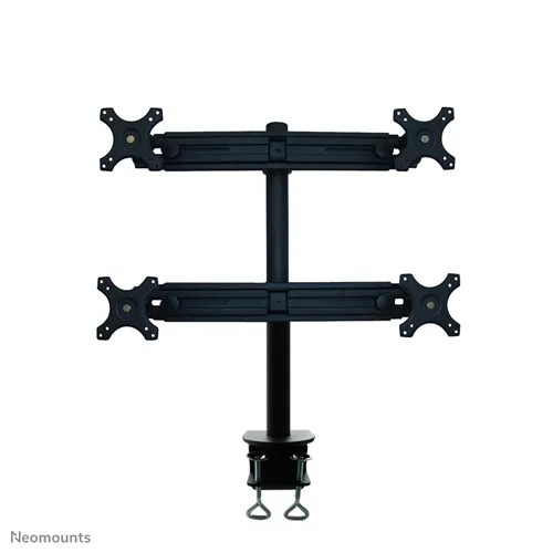 Neomounts by Newstar FPMA-D700D4 Tilt/Turn/Rotate Quad Desk Mount (clamp) for four 19-30″ Monitor Screens, Height Adjustable – Black Specifications General Min. screen size*: 19 inch Max. screen size*: 30 inch Min. weight: 0 kg (per screen) Max. weight: 8 kg (per screen) Screens: 4 VESA pattern: 75×75, 100×100 mm VESA minimum: 75×75 mm VESA maximum: 100×100 mm Desk mount: Clamp Functionality Type: Full motion, Tilt, Rotate, Swivel Tilt (degrees): 180° Swivel (degrees): 180° Rotate (degrees): 360° Width: 52 – 83 cm Depth: 15 cm Height: 22 – 70 cm Height adjustment: Manual Clamp range: 9 cm https://www.neomounts.com/home-office-solutions/monitor-desk- mounts/fpma-d700d4-neomounts-by-newstar-monitor-desk-mount/