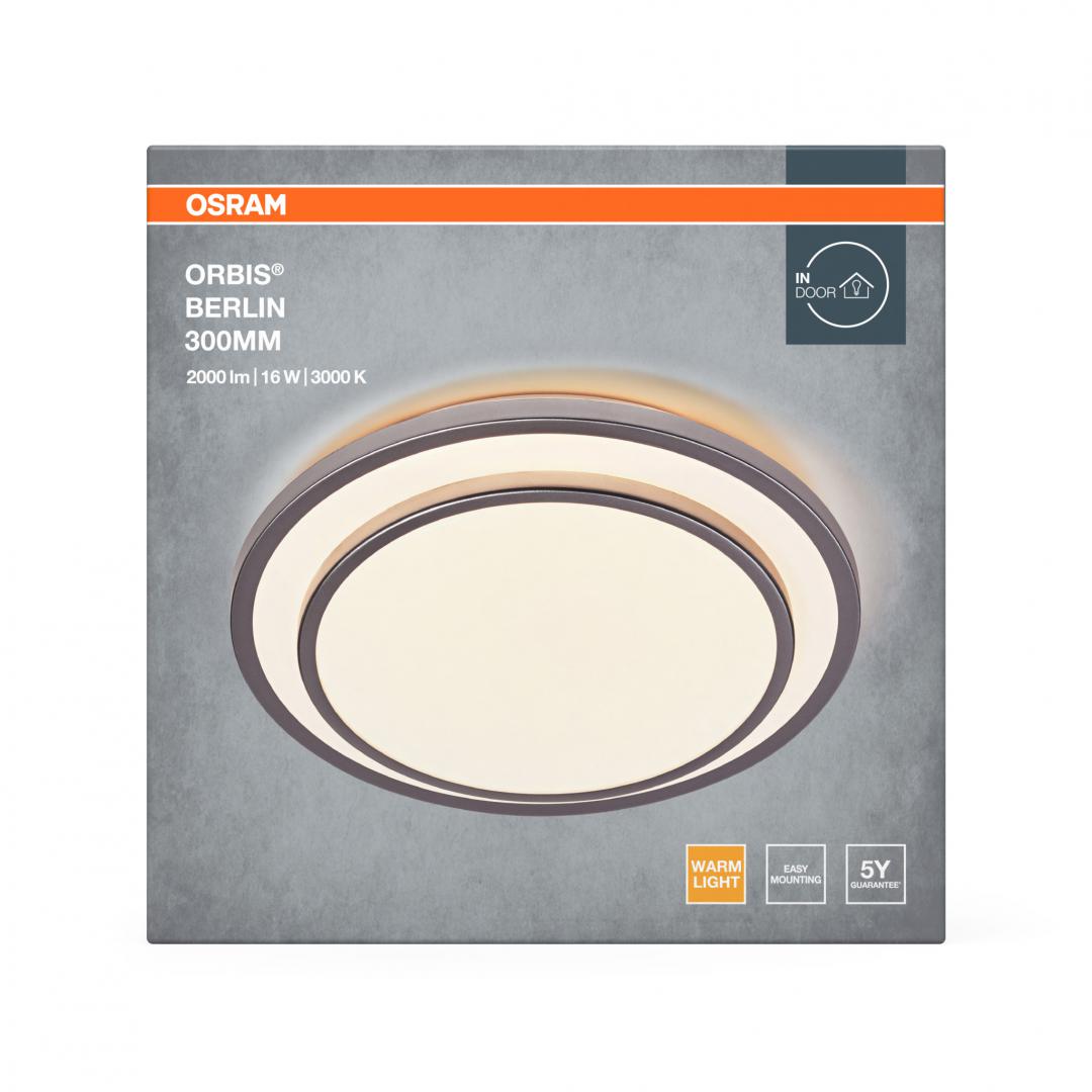 LED ceiling lamp OSRAM Orbis Berlin 300, 16W, 2000 lm, warm light (3000K), IP20, Ø30cm, metal/plastic, Silver