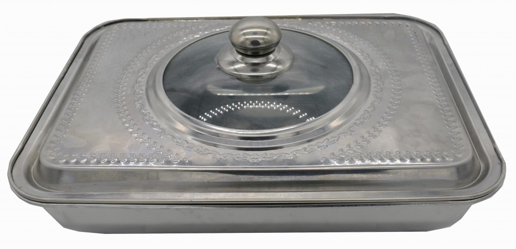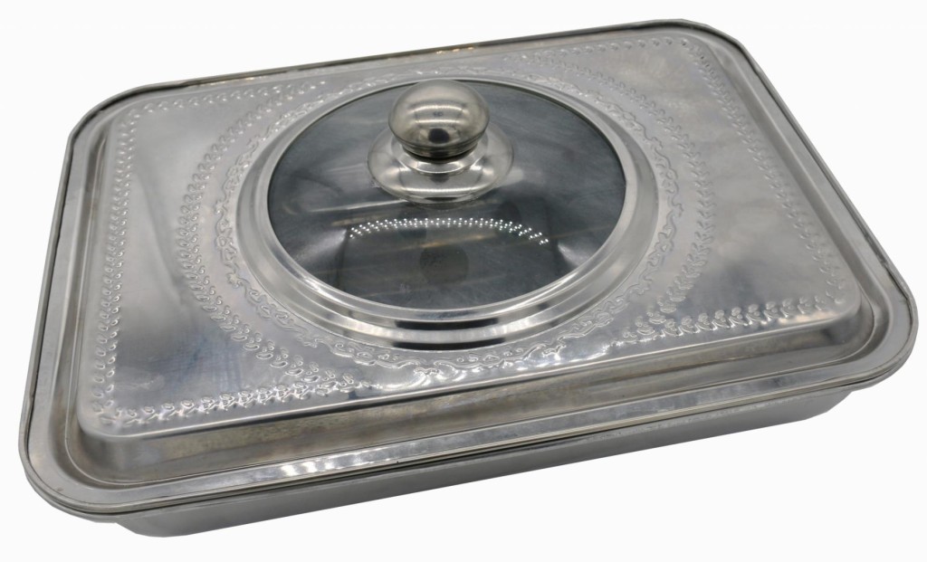 Oven tray with lid, stainless steel, 35 * 26 * 7cm Material: stainless steel + heat-resistant glass