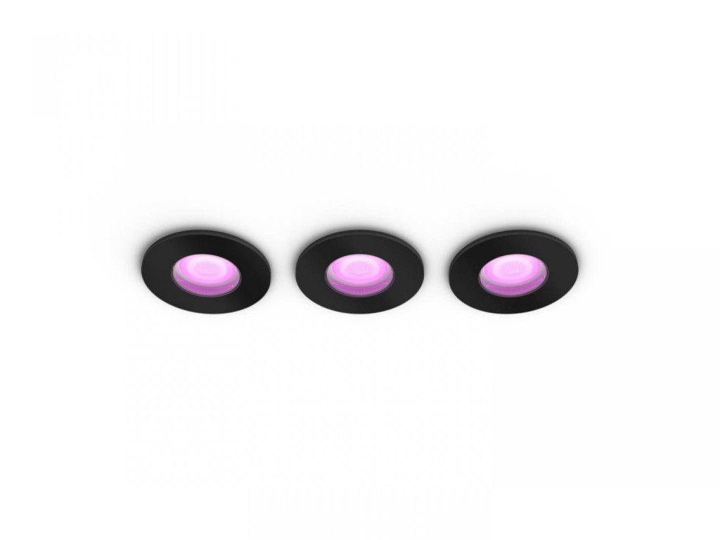 Pack of 3 smart RGB LED recessed spotlights Philips Hue Belt, Bluetooth, GU10, 3×5.7W, 1050 lm, white and color light (2000-6500K), IP44, 9.4cm, Black
