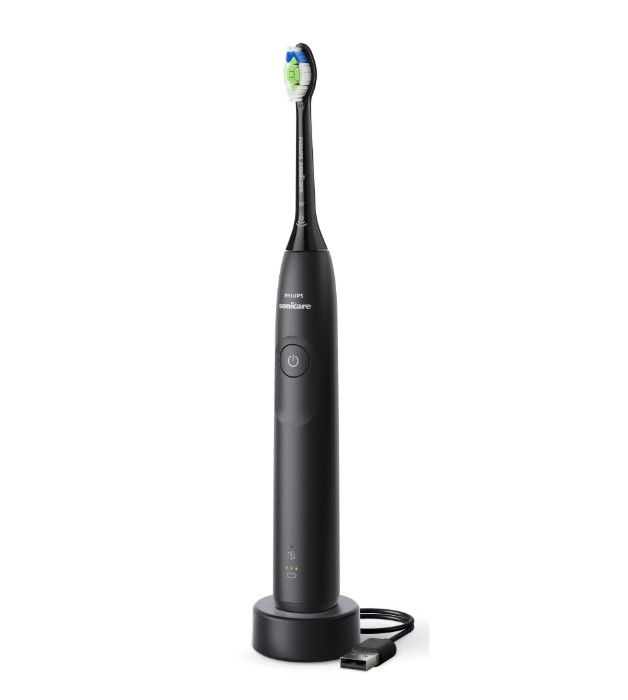 Periuta de dinti electrica Philips Sonicare HX7101/01, 62.000 miscari/minut, autonomie 21 zile, 1 mod periere, 2 intensitati, senzor presiune integrat, functia BrushSync, inclus capat de periere Otimal White, negru