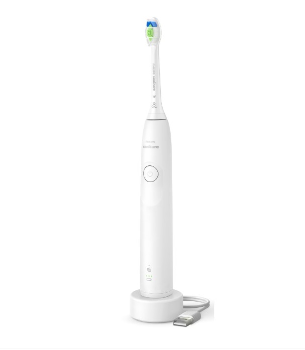 Periuta de dinti electrica Philips Sonicare HX7108/01, 62.000 miscari/minut, autonomie 21 zile, 1 mod periere, 2 intensitati, senzor presiune integrat, functia BrushSync, inclus capat de periere Otimal White, alb