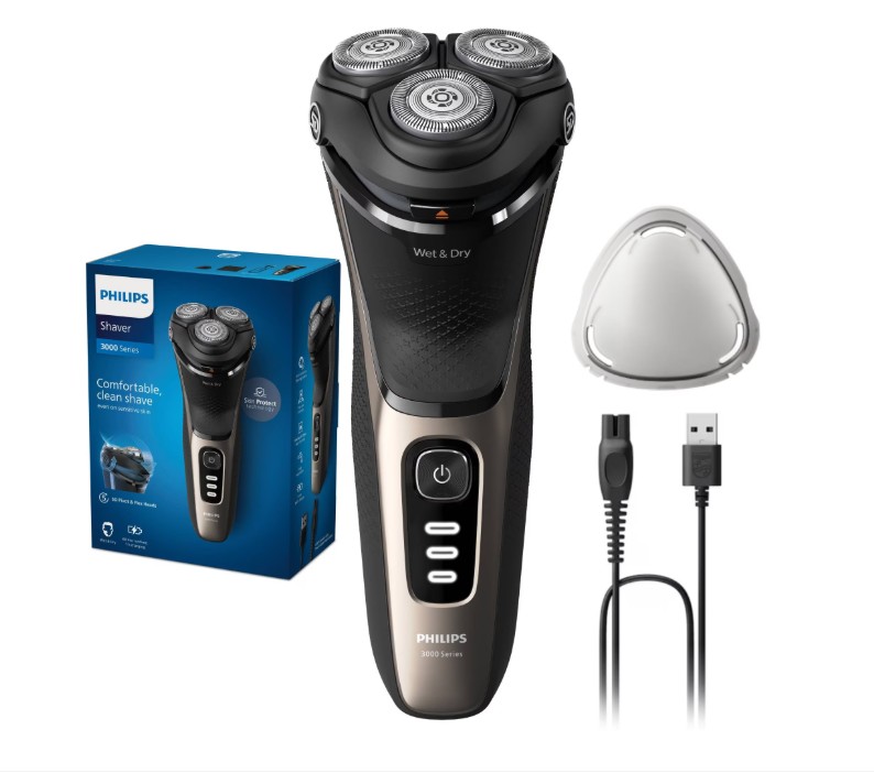 PHILIPS Shaver Series 3000 S3242/12 Wet&Dry, 60 min runtime, 3 cutting elements, Gold, L x W x H (mm) 80x140x190
