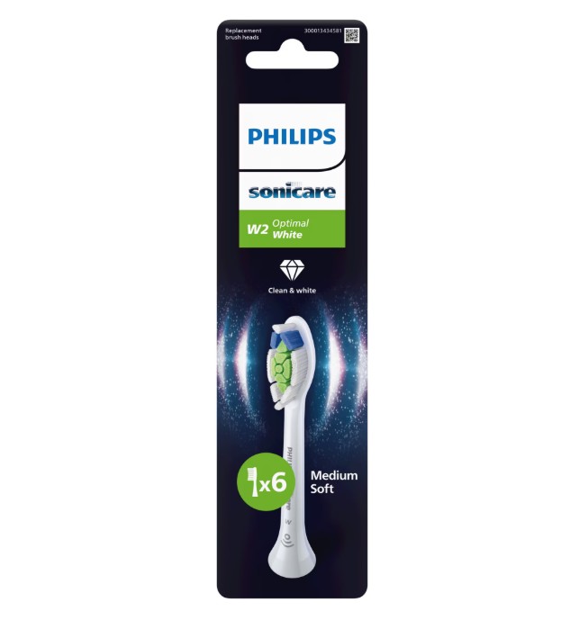 Philips Sonicare Optimal White HX6066/87 Refills, 6-pack brush heads, Standard, click-on, BrushSync mode synchronization, White