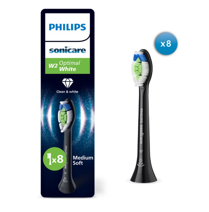 Philips Sonicare Optimal White HX6068/88 refills, pack of 8 brush heads, Standard, click-on, BrushSync mode synchronization, Black