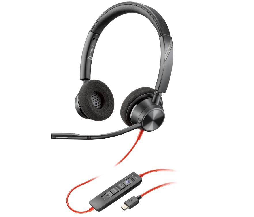 Poly Blackwire 3325 Stereo Microsoft Teams Certified USB-C Headset +3.5mm Plug +USB-C/A Adapter