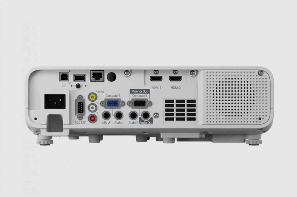 Projector EPSON EB-L260F, 3LCD, RGB, 4600 lumens, FHD 1080p, 16:9, Cpontrast: 2,500,000:1, lamp 20,000 hours/ 30,000 hours Eco mode, image size: 31″-310″, Interface: USB 2.0 -A, USB 2.0, RS-232C, Ethernet interface (100 Base-TX / 10 Base-T), Wi-Fi Direct, VGA in (2x), VGA out, Composite in, Miracast, Jack plug out, Jack plug in (2x), Cinch audio out, Microphone input, HDMI (HDCP 2.2) (2x), Wireless LAN IEEE 802.11a/b/g/n/ac, built-in speaker 16W, weight 4.2 kg, color: White.