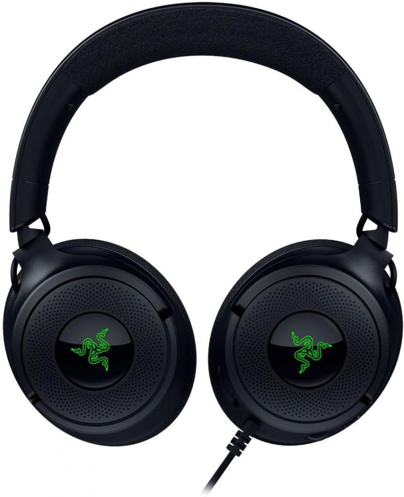 Razer Kraken V4 X gaming headset, response frequency 20 Hz – 28 kHz, impedance 32 Ω, driver customized Dynamic 40 mm Drivers, sensitivity 96 dBSPL/mW at 1 kHz by HATS, microphone frequency 100 Hz – 10 kHz, microphone sensitivity -42 ± 3 dBV/Pa, 1 kHz, Razer Chroma™ RGB lighting, 7.1 Surround Sound, black