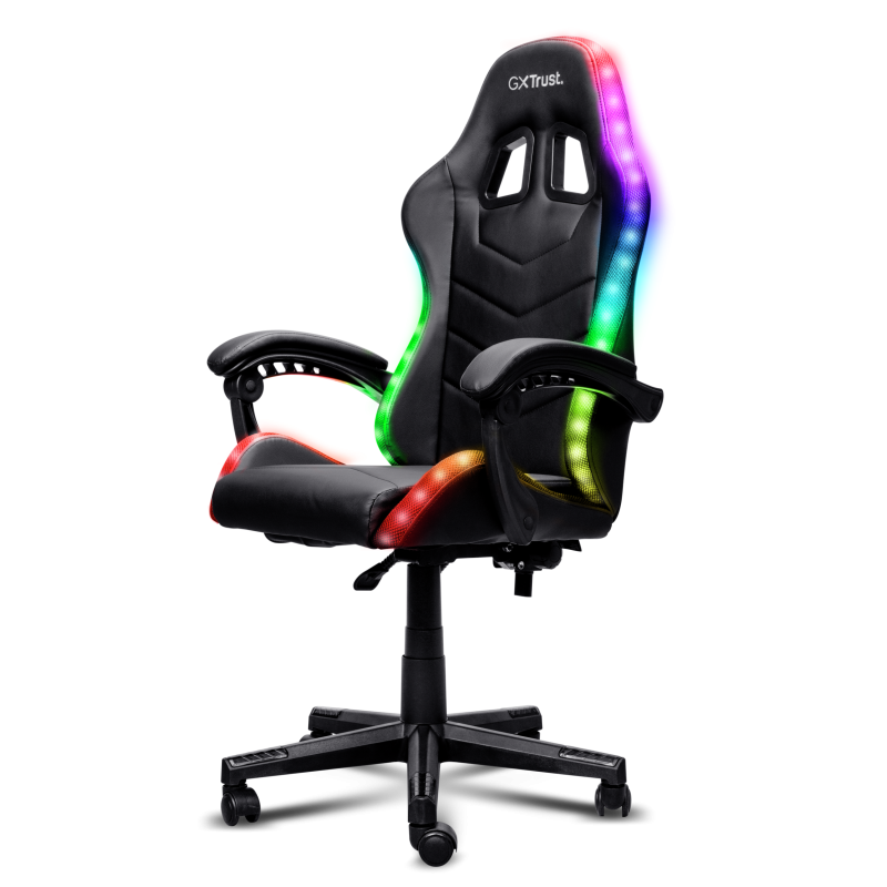 Scaun gaming Trust GXT 704 Roniq RGB, 5 roti, gas lift clasa 3, ajustabil pe inaltime, material PU leather, greutate maxima suportat 110 kg, negru