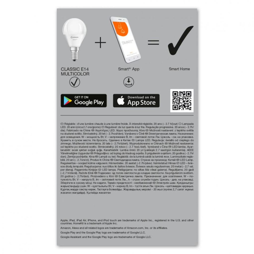Set of 3 Ledvance SMART + WiFi Mini Bulb Multicolour LED bulbs, E14, 5W (40W), 230V, adjustable light temperature 2700-6500K, 470 lumens, lifespan 15,000 hours, energy class A +, can be controlled by LEDVANCE SMART + WiFi App ;