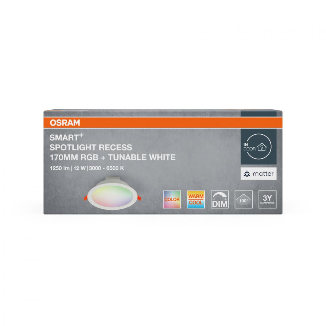 OSRAM SMART+ MATTER 100° recessed RGB LED spotlight, 12W, 1250 lm, white light and color(3000-6500K), IP20/IK03, Ø170mm, White