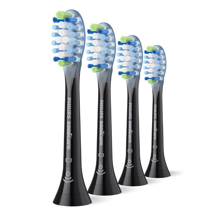 PHILIPS Sonicare Plaque Defence HX9044/88 Refills, 4-pack brush heads, Standard, Click-on, BrushSync mode synchronization, Black, W x D x H (mm) 60×25.7×230.5