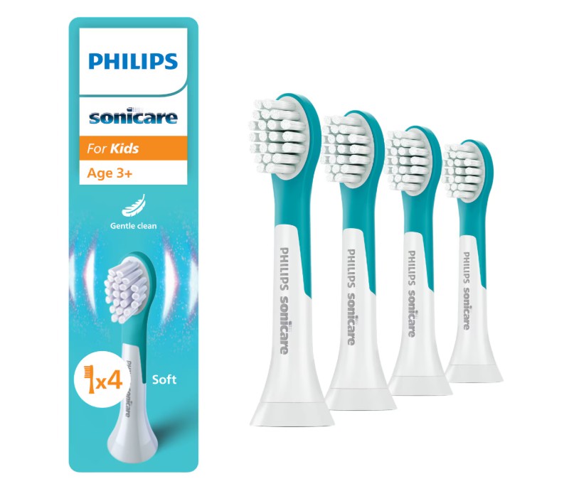 PHILIPS Sonicare Kids Compact HX6034/90 Refills, Pack of 4 brush heads, Standard, Click-on, L x W x H (mm) 60×25.7×230.5