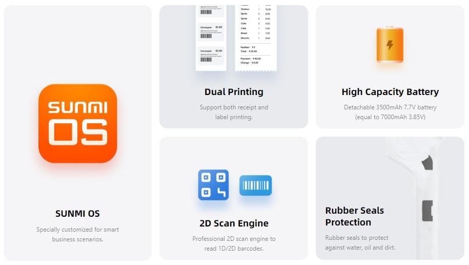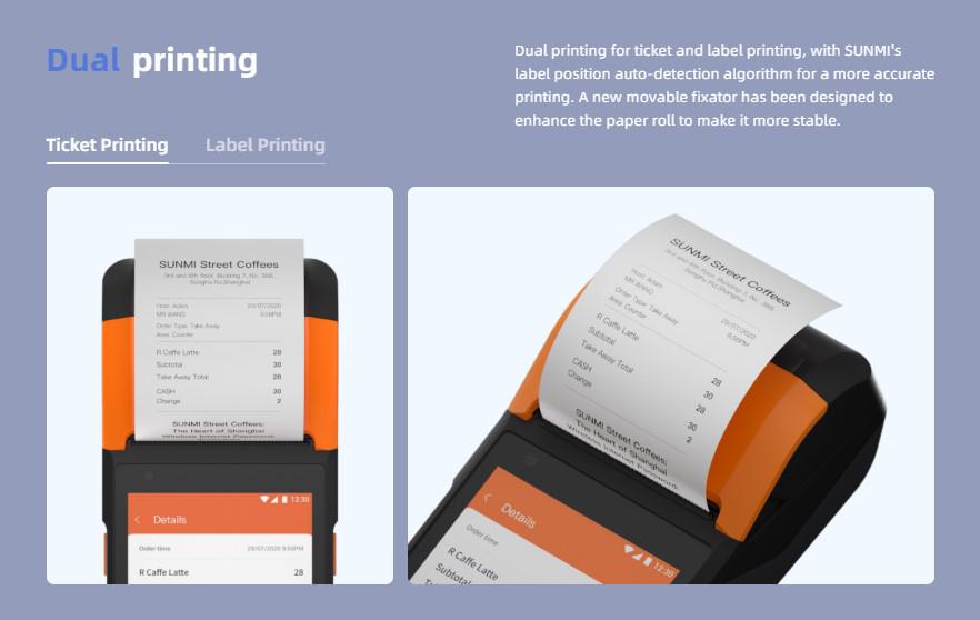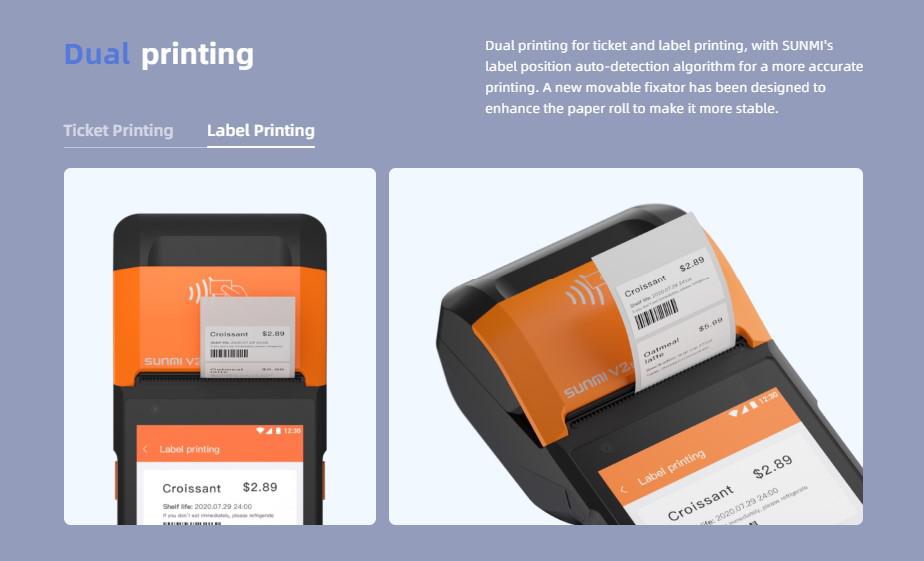 SUNMI MOBILE T5940 V2s – Wireless data POS System, V2s Android 11, 2GB + 16GB, 5MP camera, micro SD, EU 4G, NFC, 2 SAM, printer + label printer, non-GMS