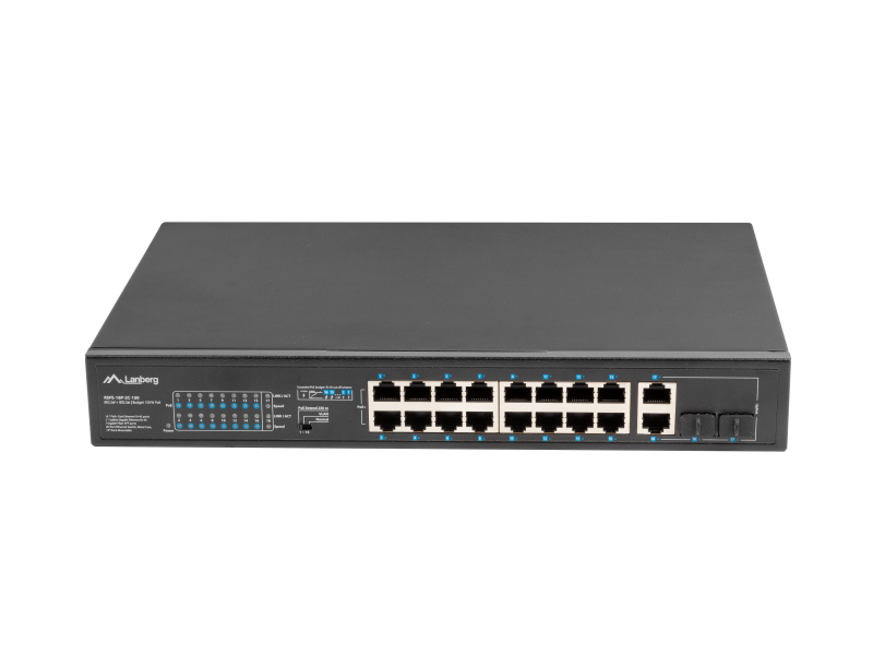 Switch 16x 100 Mb PoE+ / 2x 1 Gb / 1x SFP, fara management, rack 10″ & 19″, Gigabit Ethernet, 150W
