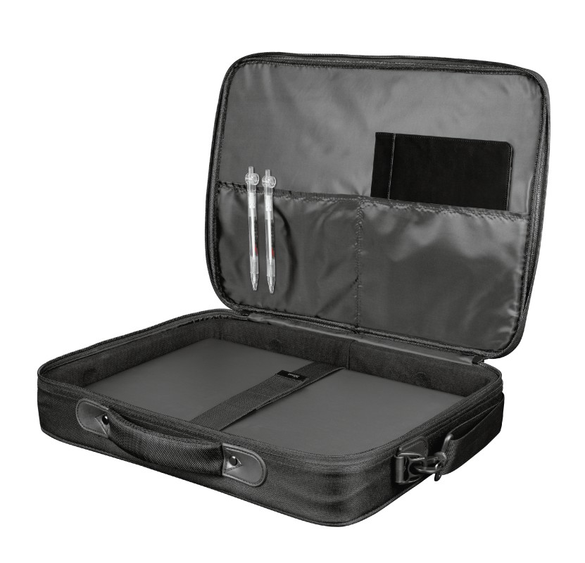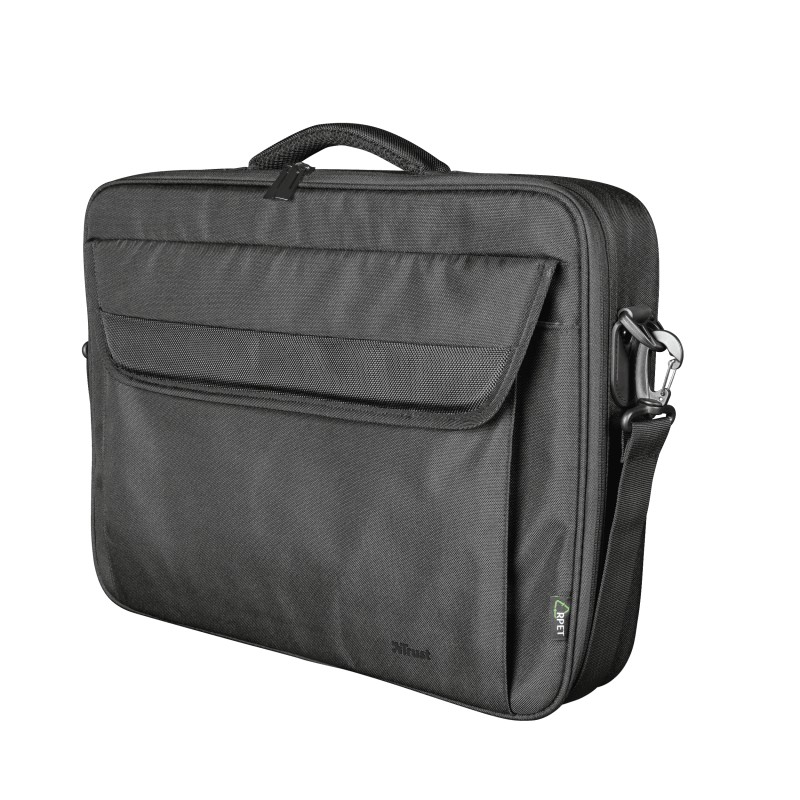 Trust Atlanta Carry Bag for 15.6″ laptop General Type of bag carry bag Number of compartments 4 Max. laptop size 16 ” Max. weight 20 kg Height of main product (in mm) 390 mm Width of main product (in mm) 320 mm Depth of main product (in mm) 60 mm Total weight 475 g Weight of main unit 475 g Exterior Fabric type polyester Opening type clamshell Carry handle yes Shoulder strap yes Shoulder strap detachable yes Shoulder strap padded yes Trolley wheels no Trolley strap no Zippers 1 Interior Laptop Compartment Depth (mm) 50 mm Laptop Compartment Width (mm) 370 mm Laptop Compartment Height (mm) 260 mm Laptop compartment padded yes Space divider no Protection Type of case softcase Shock absorption no Hardened bottom no Compatibility Compatible Device Types laptop https://www.trust.com/en/product/24189-atlanta-laptop-bag-for-15-6- laptops-eco