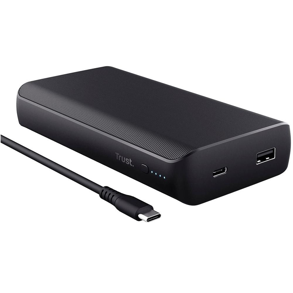 External laptop battery, Trust Laro, 2 ports: 1 x USB-C (output power 65W), 1 x USB-A (output power 18W), capacity 20,000mAh, recharge time 2 hours, compatible with: phone, laptop, tablet , action camera, consoles: Nintendo Switch & Switch Lite, black