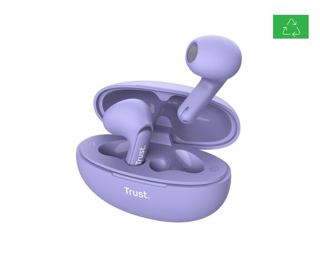 Trust Yavi Wireless Headphones, TWS, Bluetooth, USB-C Interface, Response Frequency 20 Hz – 20,000 Hz, Purple