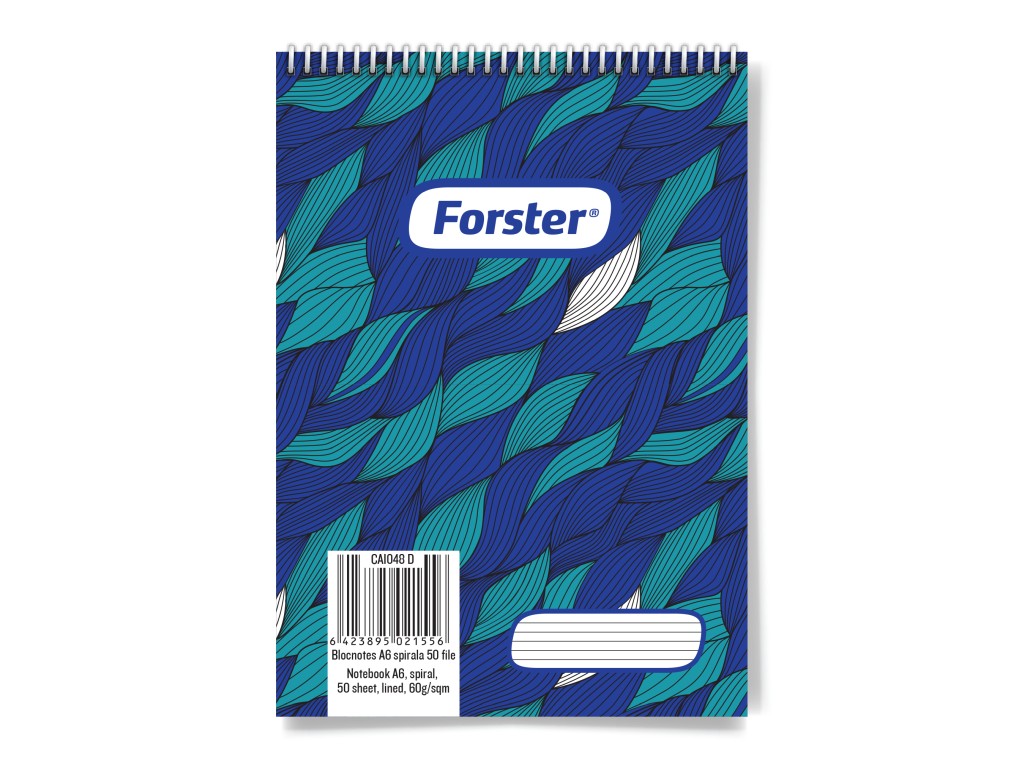 Standard paper.The sheets are fastened with a metal spiral.Cardboard cover. Size: A6. Paper weight: 30 g. 50 sheets.