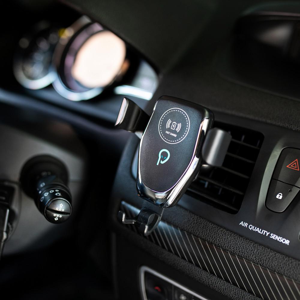 SPACER car support and wireless charger for SmartPhone 2 in 1, fixed in the grill, Qi wireless charging 10W